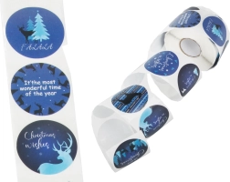 Този декоративен комплект стикери предлага широка гама коледни мотиви като еленчета, елхички и празнични пожелания. Всяка ролка съдържа 500 стикера в осем различни дизайна, осигуряващи достатъчно декорации за целите празници.