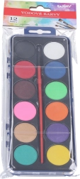 Компактен комплект акварелни бои за деца и креативни възрастни, съдържащ 12 наситени нюанса и практична четка. Идеален за училище, хоби и първи опити в рисуването – лесно се смесват, съхнат бързо и осигуряват гладко покритие върху хартия.