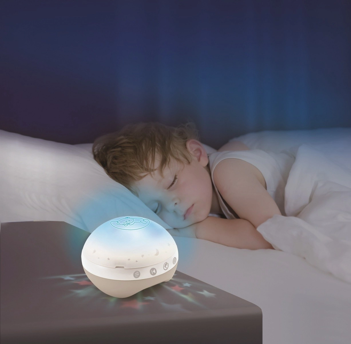 Проекторът прожектира звездички и възпроизвежда 6 мелодии и 4 звука от природата, които помагат на бебето да заспи по-бързо.