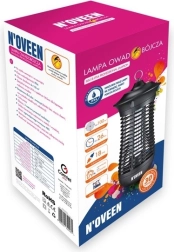 Мощна лампа против насекоми с мощност 18 W и защита IPX4 за вътрешна и външна употреба. Комбинацията от UV-A светлина 365 nm и високоволтова решетка ефективно унищожава комари, мухи и дрозофили. Устойчива метална и негорима ABS конструкция, тих режим, без химия и лесна поддръжка благодарение на подвижната чашка.