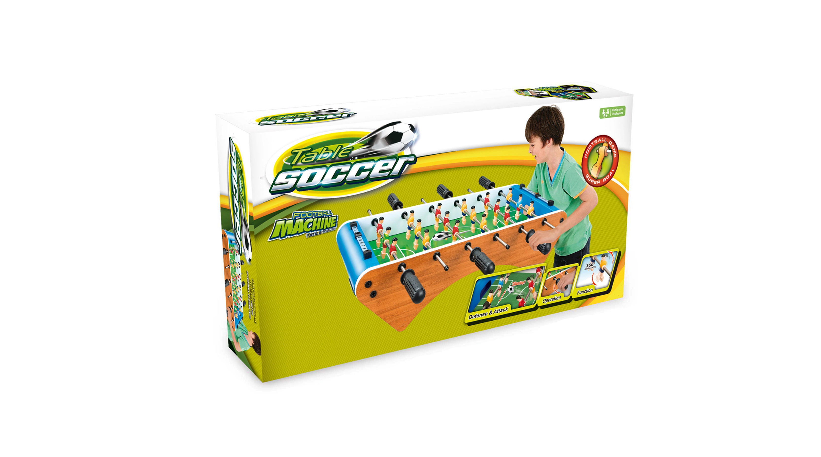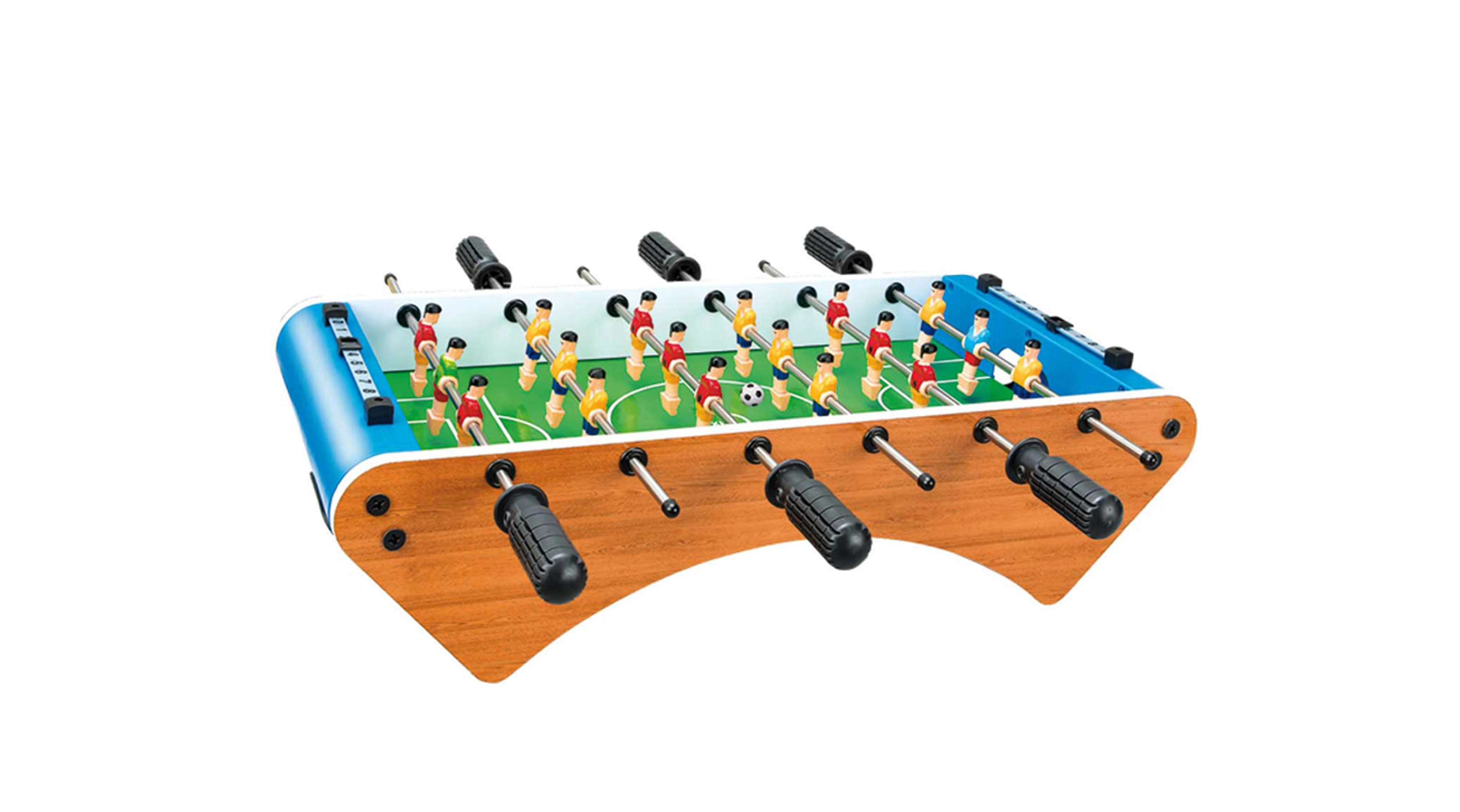 Компактният настолен футбол за цялото семейство предлага бърза и забавна игра по всяко време и навсякъде. Благодарение на по-малките размери се побира на маса и в детска стая, а броячът на голове улеснява честните двубои. Идеален за деца от 3 години и възрастни, които искат да споделят общи моменти, пълни със съревнование.