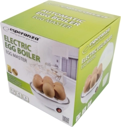 Без повече отброяване на минутите. Уредът за варене на яйца Esperanza Egg Master предлага лесно и надеждно решение за ежедневната закуска. Просто налейте правилното количество вода с помощта на мерителната чаша, поставете яйцата и оставете уреда да свърши останалото. Автоматичният контрол на процеса осигурява равномерно варене и безопасно изключване.