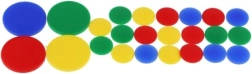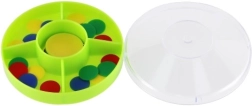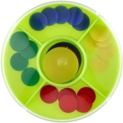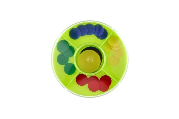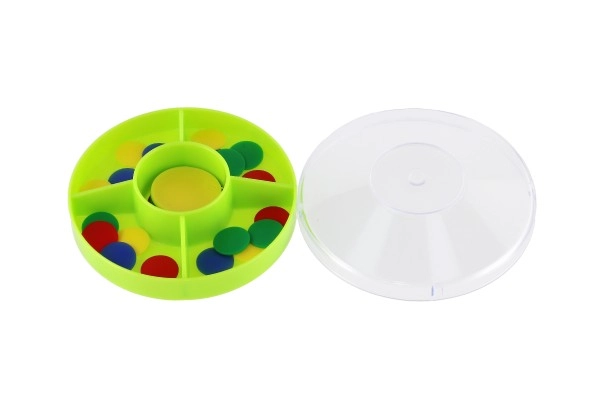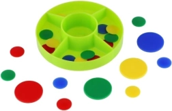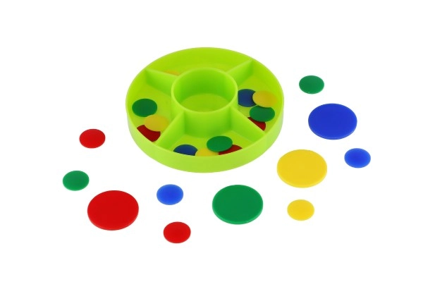 Играта помага на децата да развиват фината моторика чрез манипулиране с малките дискове.