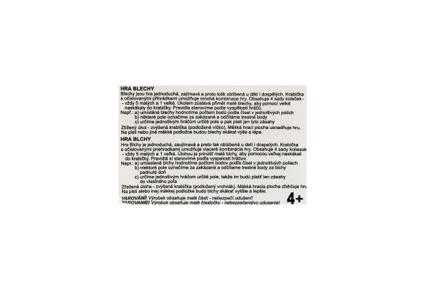 Детската игра Бълхи е забавна игра, която развива фината моторика и концентрацията при децата. В комплекта ще намерите четири цветни комплекта дискове, като всеки комплект съдържа пет малки диска и един голям. Играта включва и кутийка с номерирани отделения, позволяваща много игрови комбинации. Задачата е с помощта на голямата бълха да се вкарат всички малки бълхи в отделенията на кутийката.