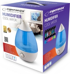 Създайте у дома комфортна и здравословна среда. Ултразвуковият овлажнител Esperanza COOL VAPOR ефективно повишава влажността, като помага за подобряване на дишането, предотвратява изсушаването на кожата и подпомага по-спокоен сън. Благодарение на тихата работа не пречи нито при почивка, нито при работа.