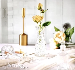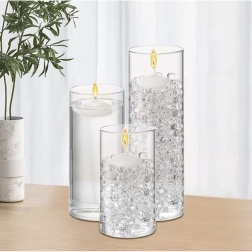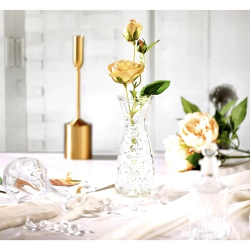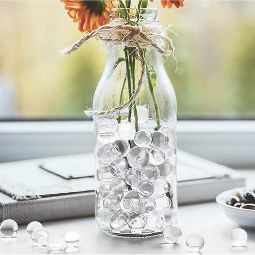 Прозрачните перли придават на аранжировките чист, модерен вид и стабилизират стъблата на цветята и свещите в стъклени съдове.