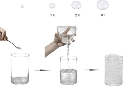 След добавяне на вода перлите за няколко часа значително набъбват до около 11 mm и са готови за употреба.
