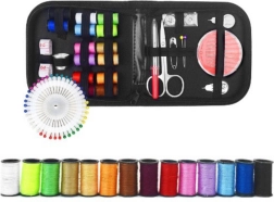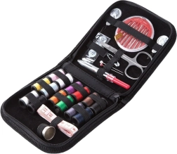 Компактен мини комплект за шиене с 29 части в елегантен калъф, идеален за бързи поправки и домашни корекции на дрехи. Съдържа всичко необходимо – конци, игли, ножички, карфици и безопасни игли, копчета, метър и други принадлежности. Перфектен за дома и за пътуване благодарение на лекия и преносим калъф.