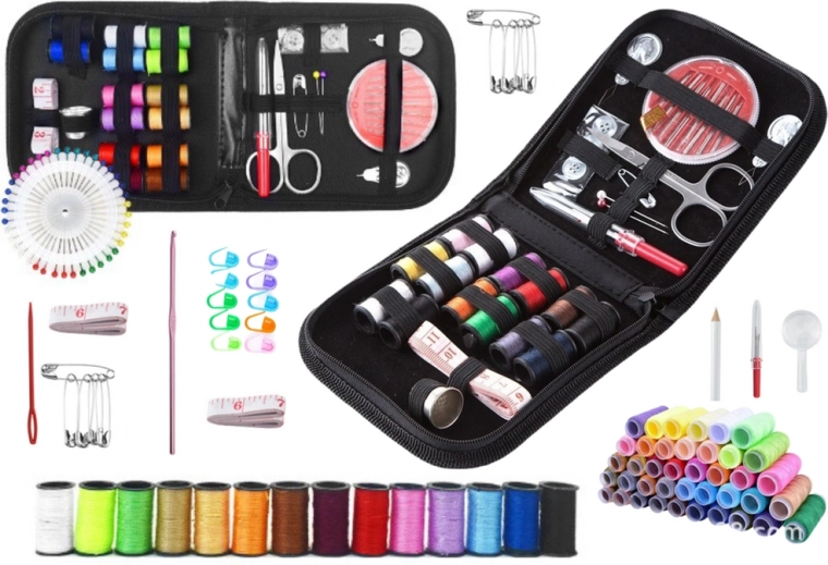 Практичният мини комплект за шиене е проектиран да е винаги под ръка – независимо дали трябва бързо да пришиете копче, да скъсите подгъв или да направите дребна поправка. Всички инструменти са сигурно прибрани в здрав калъф, който се побира в чанта, куфар или чекмедже.