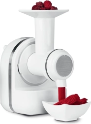 Този мултифункционален робот е отличен помощник в кухнята, който спестява време и предлага здравословни възможности за цялото семейство. Устройството позволява експресна подготовка на плодови десерти от замразени плодове, осигурявайки здравословна алтернатива на класическия сладолед.