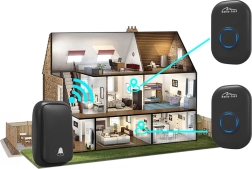 Безжичен и безбатериен звънец за врата с кинетичен бутон и обхват до 150 м. Предлага 51 мелодии, 4 нива на сила на звука включително заглушаване и външен бутон с IP44 за надеждна работа при всякакво време.