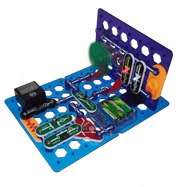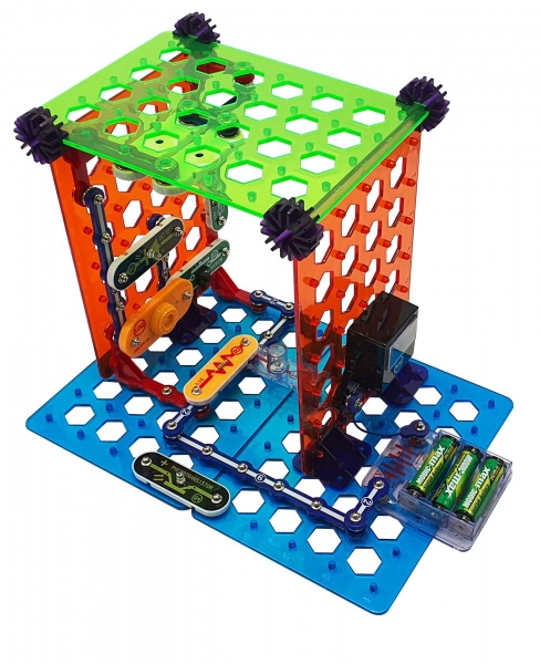 Цветово разграничени компоненти се щракват върху основната платка без запояване. Идеално за първи стъпки в електрониката и практично STEM обучение.