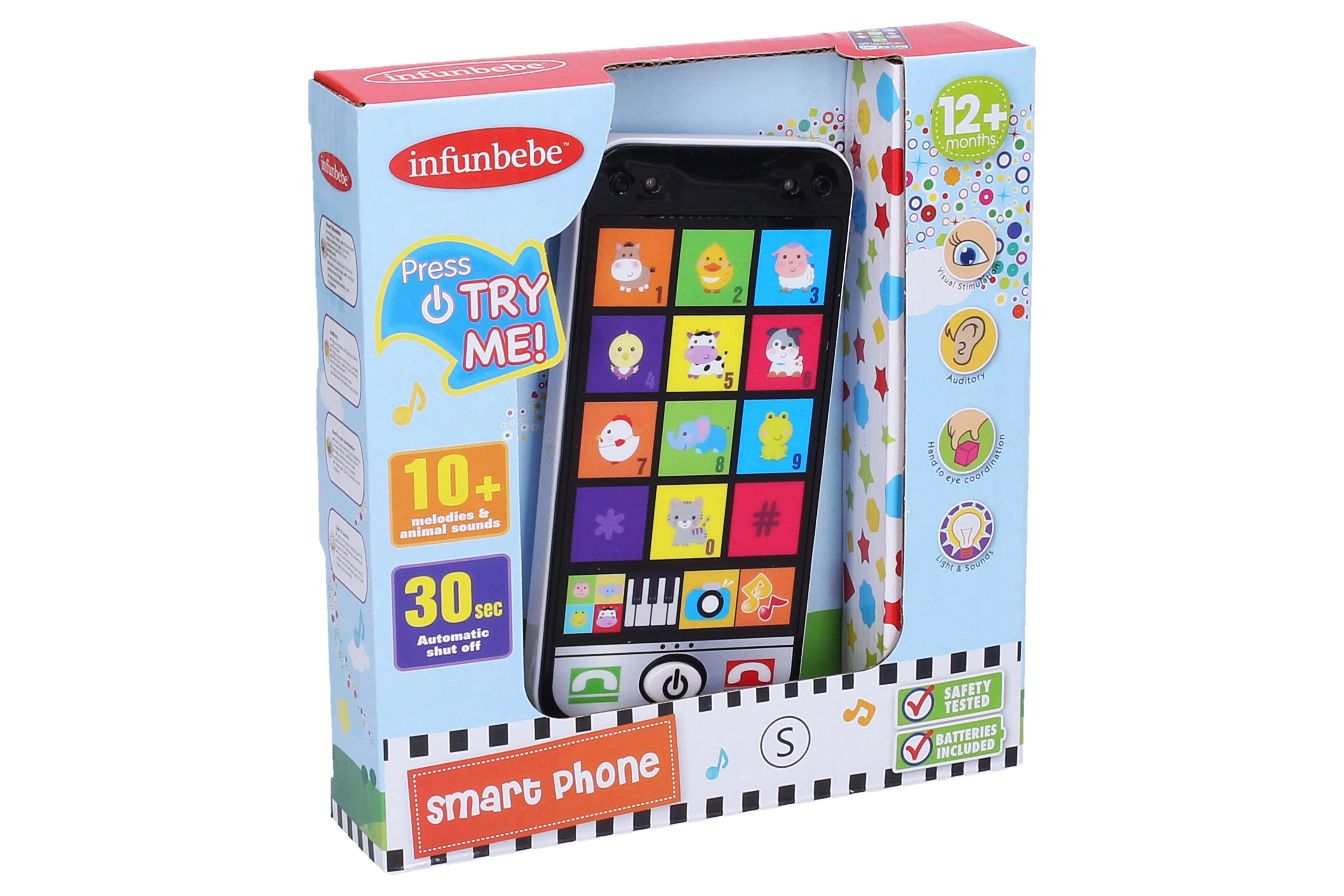 Забавен интерактивен смартфон за най-малките, който имитира истински сензорен телефон и развива сетивата и моториката. Предлага светлинни и звукови ефекти, 10 бутона със звуци на животни, 6 музикални и ефектни бутона и режим за свирене на клавиши. Автоматично се изключва след 30 секунди, като пести батерията.