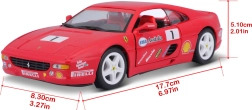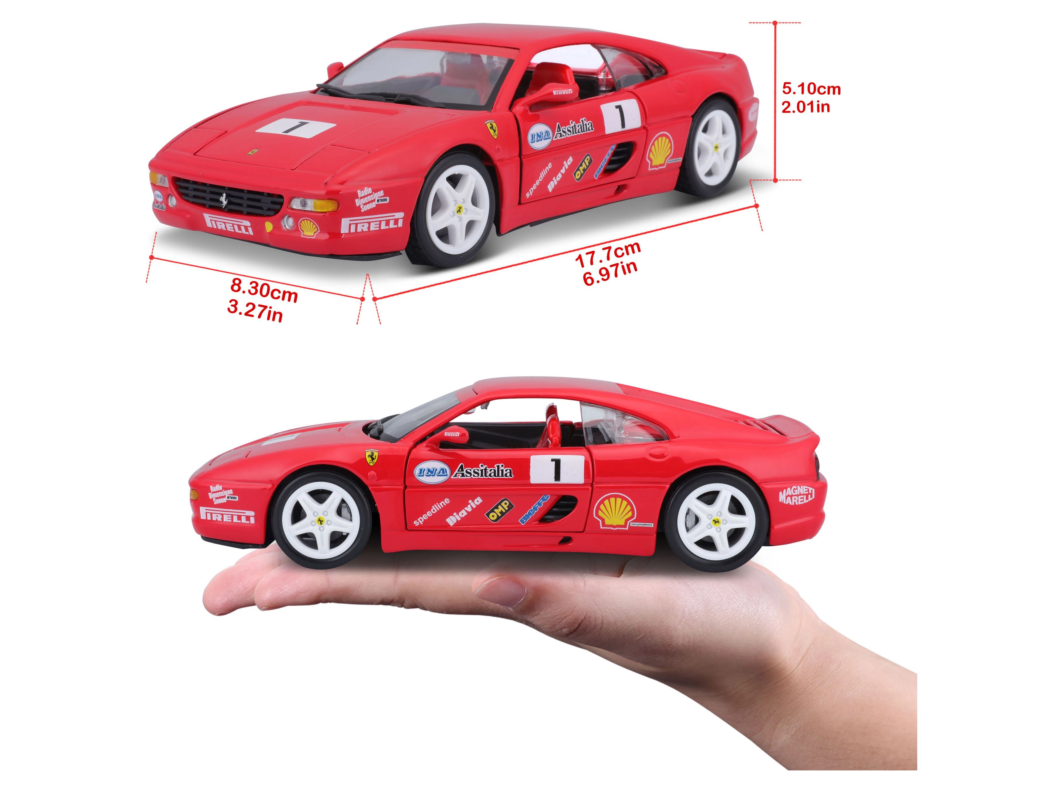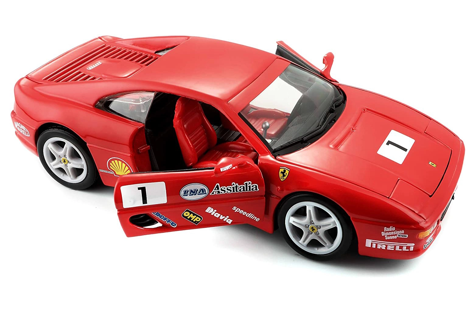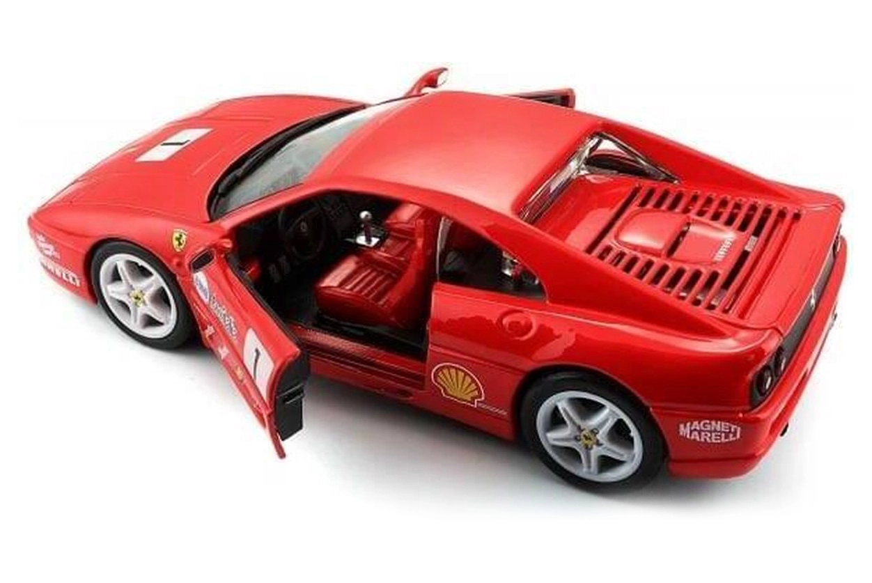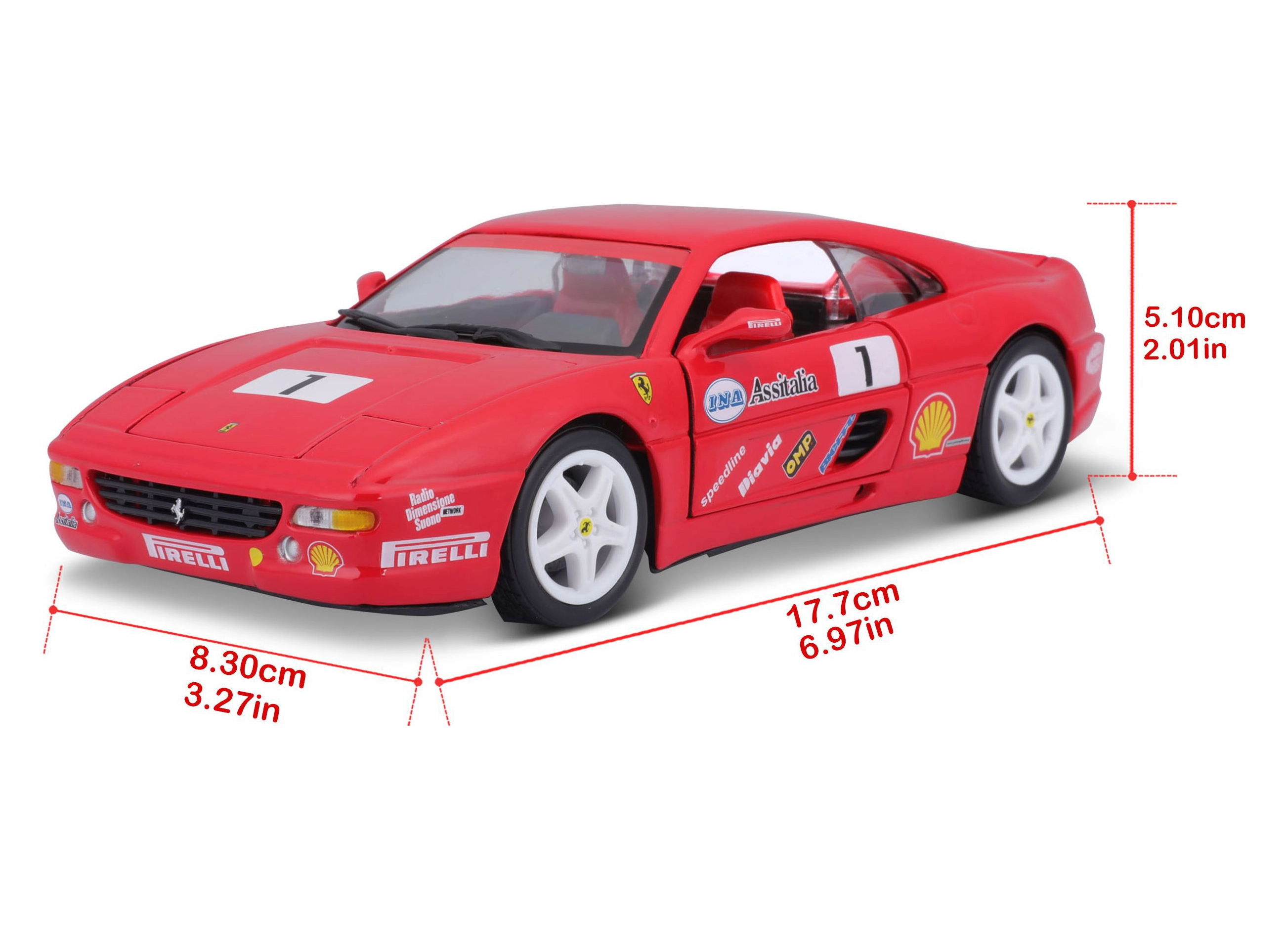 - Реалистичен дизайн: Моделът вярно пресъздава външния вид на истинското състезателно Ferrari F355 Challenge.