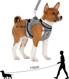 В комплекта има подвижен повод (110 см) със здрава метална карабинка. Рефлекторните елементи повишават видимостта по здрач и в тъмното, което прави разходките по-безопасни. Идеален избор за ежедневни разходки и тренировки.