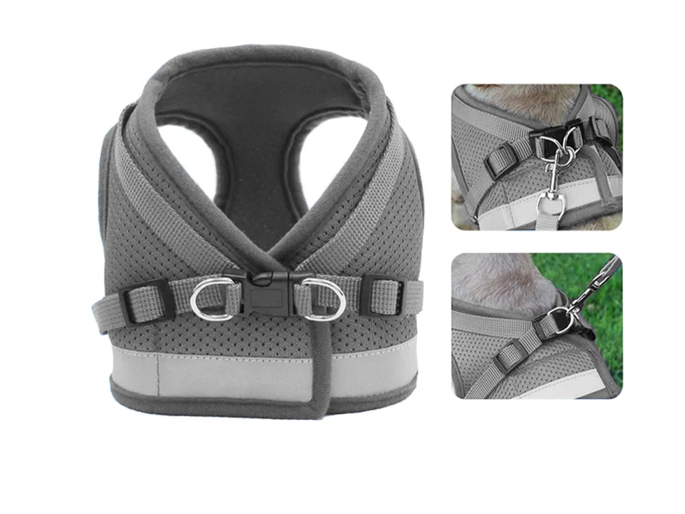 Удобен и безопасен нагръдник за любимци размер M, който разпределя натоварването без натиск върху врата. Благодарение на дишащата мрежа, рефлекторните елементи и подвижния повод с метална карабинка осигурява максимален комфорт и по-добър контрол по време на разходки.