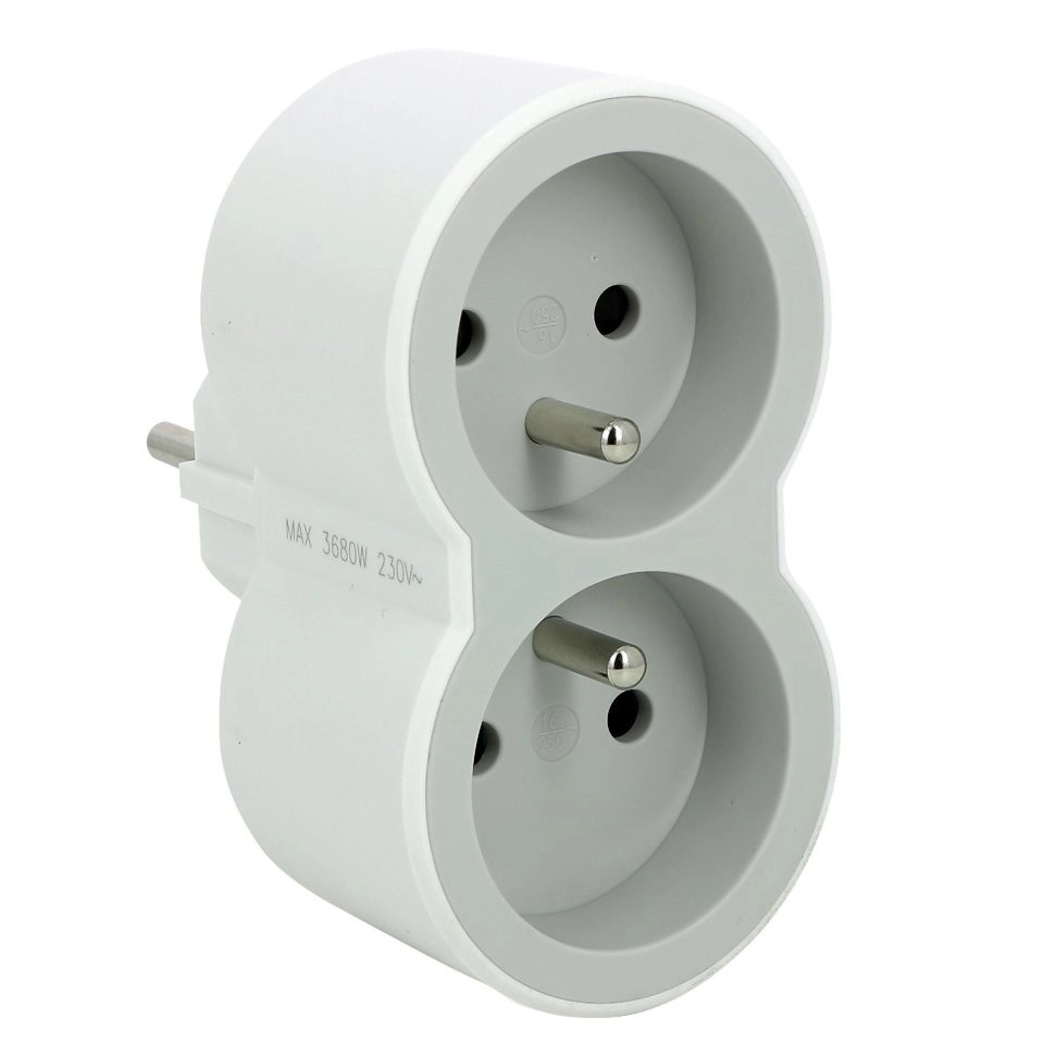 Този адаптер позволява да преобразувате един електрически контакт в два, което е практично за свързване на повече устройства.