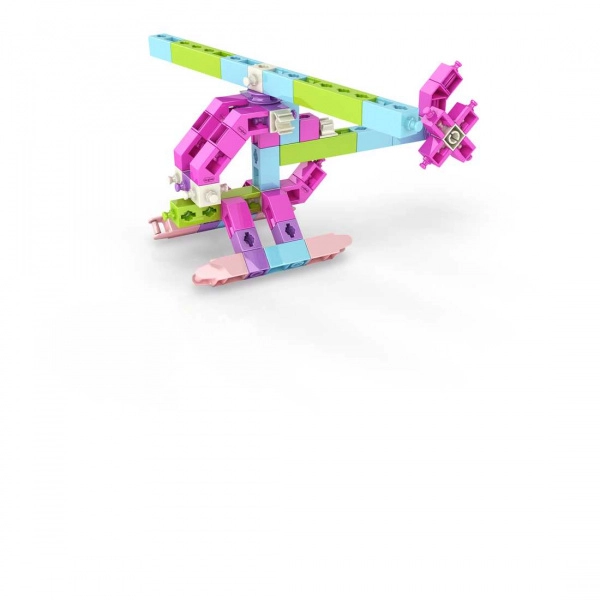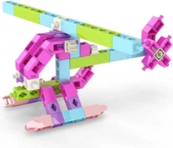 ENGINO Maker Girl 20в1 е цветен строителен комплект, който развива логическото мислене, техническите умения и креативността. С 111 части и добре обмислена система от конектори лесно ще сглобите 20 страхотни модела – хеликоптер, количка, лодка, люлка, жираф, снегомобил и много други. Благодарение на интуитивните щракващи връзки моделите са стабилни, а строенето е забавно.