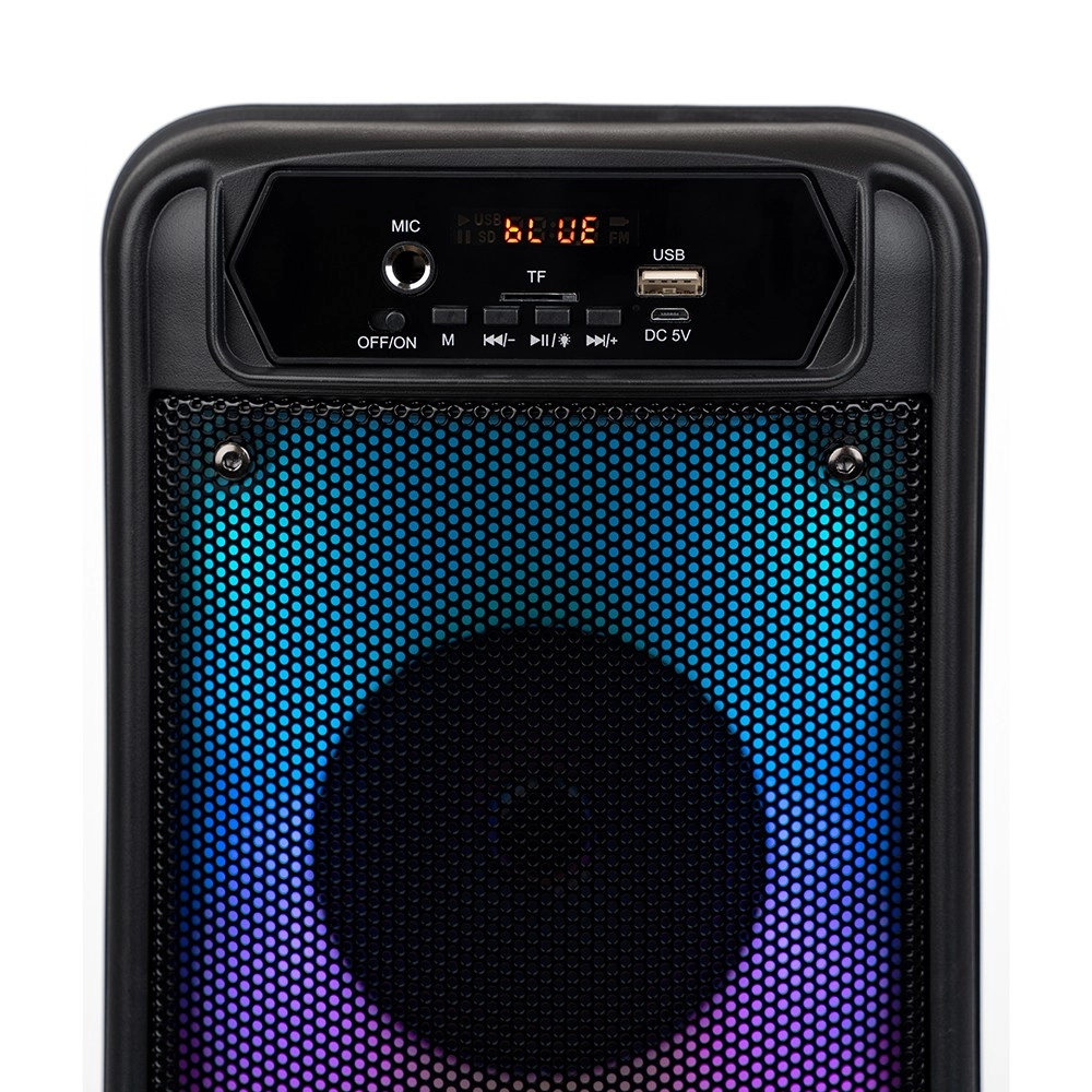 Високоговорителят FLAMEBOX UP предлага необичайно FLAME RGB осветление, което сменя цветовете и свети в ритъма на музиката. Благодарение на това изпъква при всякакви поводи. Оборудван е с безжична връзка Bluetooth 5.0, входове за USB, microSD и AUX, а освен това предлага FM радио. Изключителен звук с RMS мощност 14W и PMPO 600W.