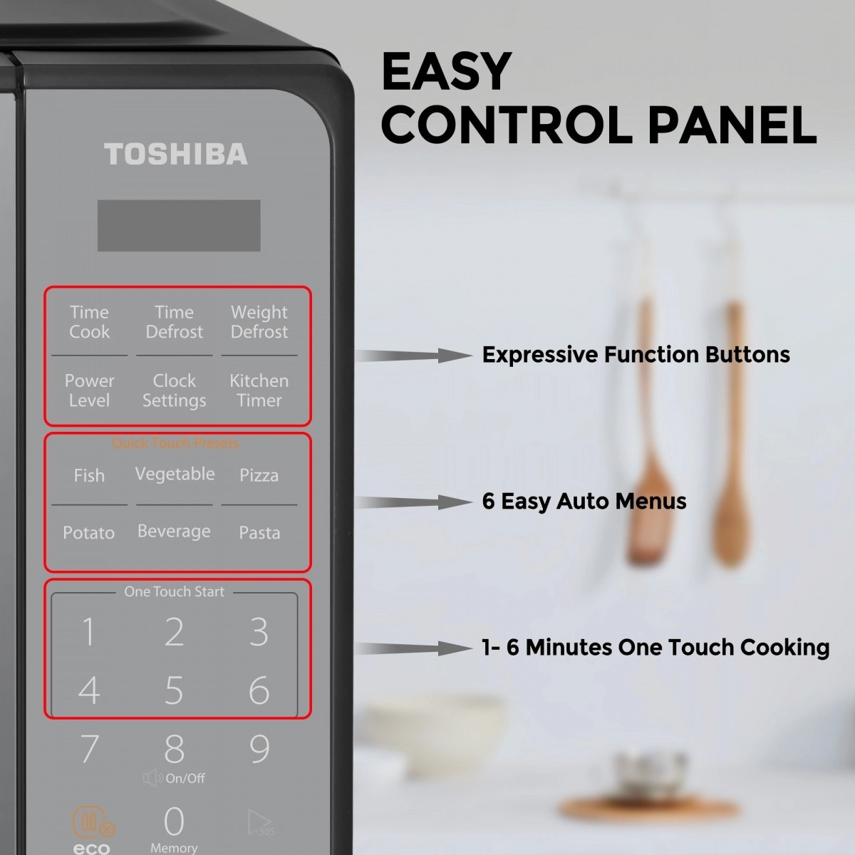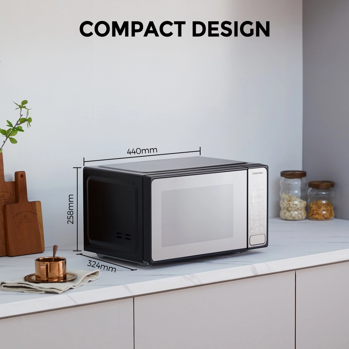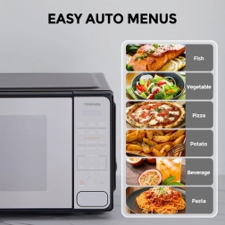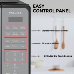 Открийте лесното ежедневното готвене с микровълновата печка Toshiba, която благодарение на компактните си размери пасва на повечето кухни. Модерният огледален дизайн стилно допълва интериора, а ясният сензорен панел осигурява бърз достъп до най-популярните функции.