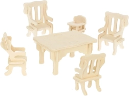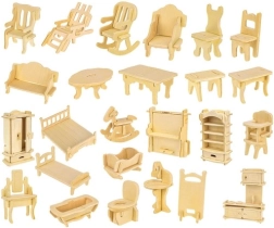 Този комплект съдържа 34 части дървени мебели, които можете да сглобите сами и да създадете идеален интериор за кукли. Мебелите са проектирани в мащаб, подходящ за различни къщи за кукли, а благодарение на работата с дърво децата могат да развиват креативността си и да създават уникални цветови комбинации според своя вкус.