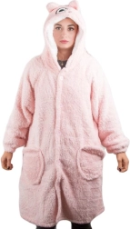 Изработено е от качествен мек материал, който ви дарява приятно усещане при допир. Благодарение на голямата качулка и просторните ръкави ще се чувствате свободно и уютно.