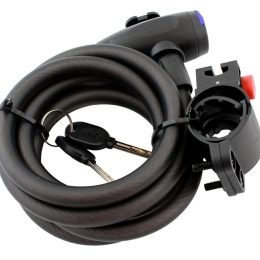 Търсите сигурност при заключване на велосипеда? Този спираловиден въжен катинар 150 см комбинира закалено стоманено въже с найлонов обков, който повишава издръжливостта и едновременно защитава боята на рамката от надраскване. Здравият катинар с ключ и защитна капачка възпрепятства проникването на прах и мръсотия, така че остава дълготрайно функционален.