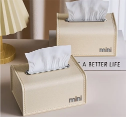 Размери 9,3 × 19 × 13,5 cm са идеални за стандартни кърпички (макс. дължина 17 cm). Декоративната кутия е налична в кремав или кафяв цвят; стоката се доставя в смес от цветове без възможност за избор. Заложете на практичен органайзер, който държи кърпичките винаги под ръка и същевременно стилно допълва интериора ви.