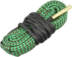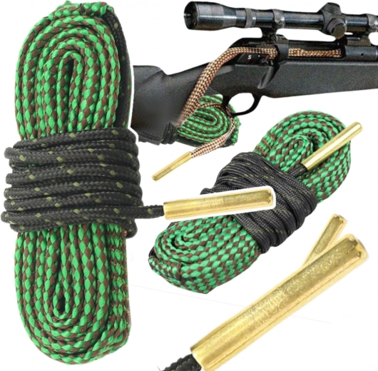 Месинговото утежнение улеснява въвеждането на въжето през цевта, а здравото плетено въже издържа на многократна употреба. Лесно се прибира в джоб и се носи навсякъде.
