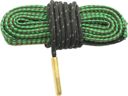 Почистващото въже е незаменим помощник за всеки стрелец, който иска да поддържа оръжието си в отлична форма. Вградените месингови четки щадящо, но основно освобождават нагарите без надраскване на канала, докато абсорбиращият микрофибър премахва остатъци от прах, сажди и смазки с едно плавно прокарване. Благодарение на месинговото утежнение лесно въвеждате въжето в цевта дори в трудни условия.