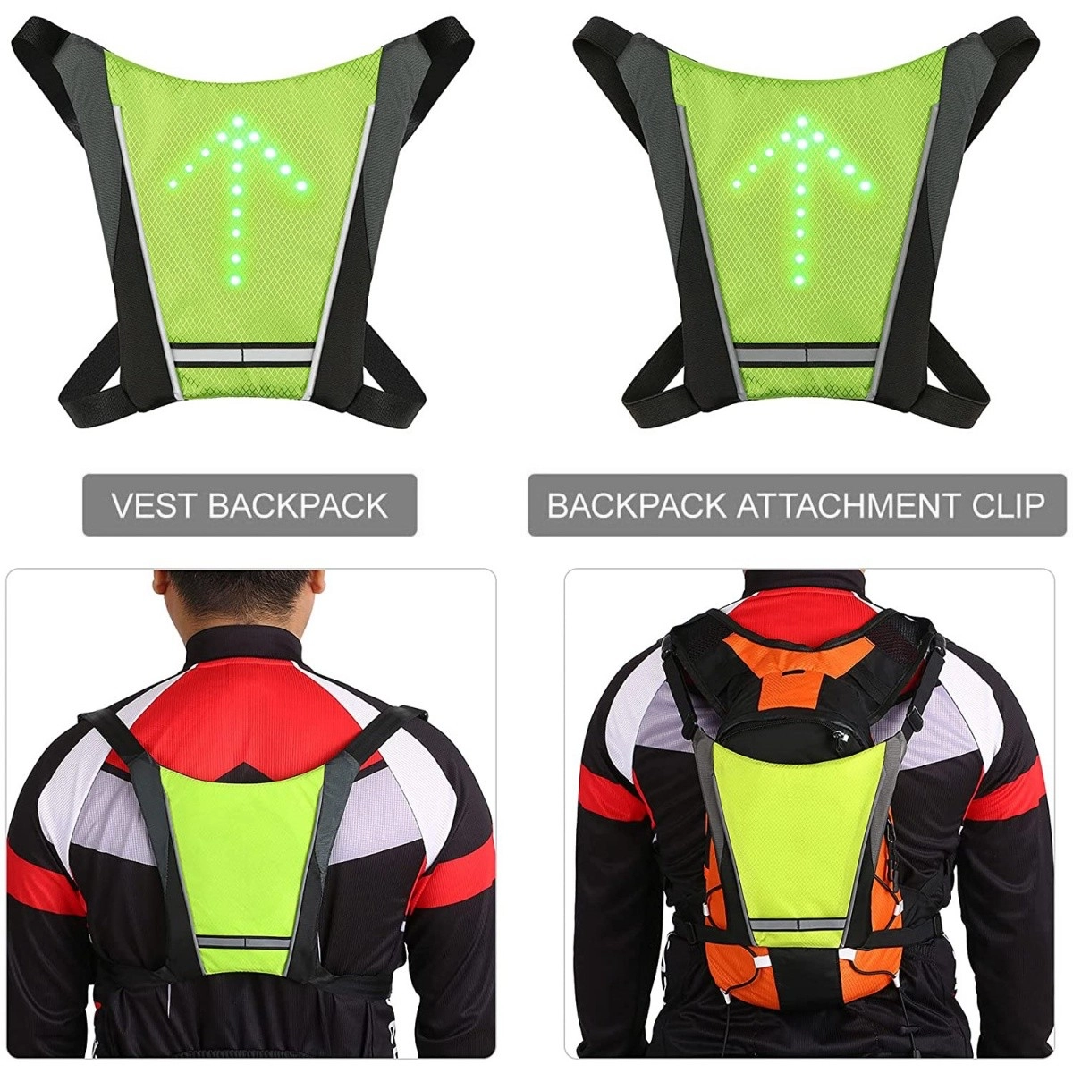 Тази рефлекторна LED жилетка повишава безопасността при движение по пътя и извън него. Ярките LED пиктограми показват посоката на движение (напред, наляво, надясно) и сигнализация за спиране, така че сте по-видими за останалите участници в движението и през деня, и през нощта. Благодарение на възможността за закрепване на гърба или върху раница ще я използвате при каране на велосипед, пешеходен туризъм и други аутдор активности.