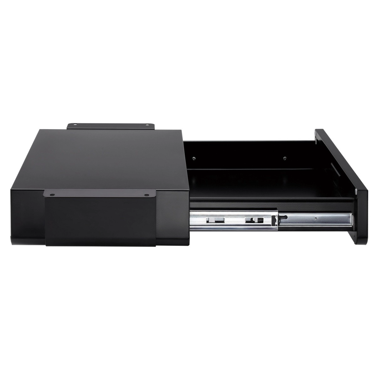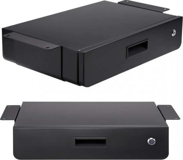 Чекмеджето се монтира бързо под плота на бюро или щанд. Дискретната инсталация пести място и поддържа работната площ чиста.
