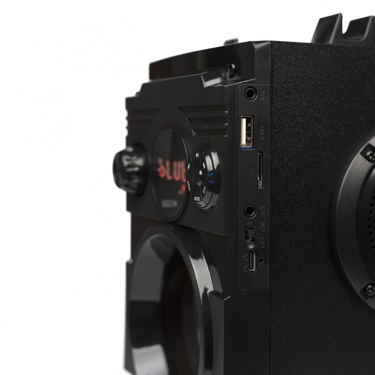 Преносимият Bluetooth високоговорител BassBlaster SQ1001 с мощност 18 W осигурява силен бас, Bluetooth 5.1 + EDR за стабилна връзка, FM радио с автоматична настройка и модерно USB‑C зареждане. Благодарение на батерия до 7 часа, режимите EQ и издръжливия MDF корпус е идеален за терасата, пикника и плажа.