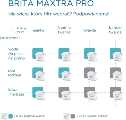 Сменяемите филтри BRITA MAXTRA PRO Pure Performance осигуряват по-чиста и по-вкусна вода, особено за мека до средно твърда вода. Един филтър сега обработва до 150 литра или до 4 седмици употреба, което означава големи спестявания и по-малко пластмасови отпадъци. Съвместими с всички кани BRITA от сериите Aluna, Style, Marella, Elemaris, Flow и със стъклената кана Glass.