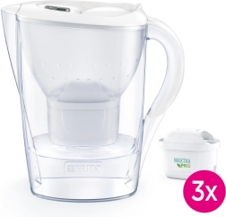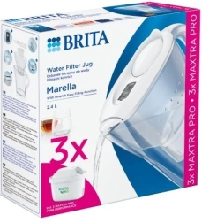 Каната BRITA Marella с обем 2,4 l осигурява приблизително 1,4 l филтрирана вода с едно напълване. Благодарение на тънката форма се побира в рафта на вратата на хладилника, капакът с отваряща се клапа позволява пълнене с една ръка, а индикаторът BRITA Memo напомня за смяна на вложката на всеки 4 седмици. Повечето части могат да се мият в съдомиялна (с изключение на капака с електроника).