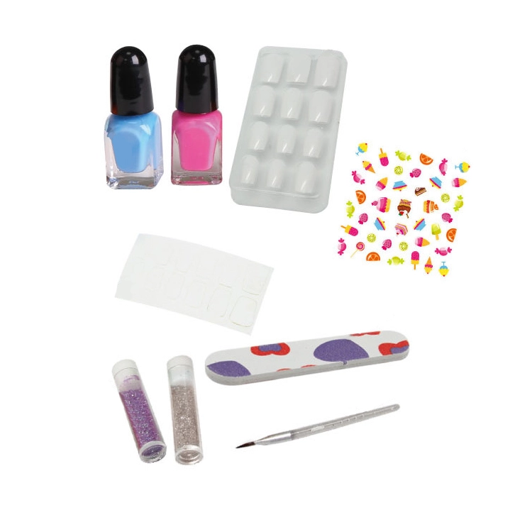 Стани маникюристка с този уникален комплект за нокти и си създай оригинални блестящи нокти с мотиви на сладкиши. Перфектно забавление за всички малки творчески души, които обичат стил и цветове.