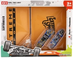 Насладете се на безкрайно забавление с пръстов скейтборд! Този комплект включва 2 мини скейтборда, рампа за трикове и инструменти за лесно сглобяване. Страхотен избор за развитие на фината моторика, координацията и креативността на деца от 3 години.