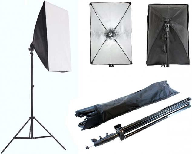 - Мека и равномерна светлина: софтбокс 60 × 40 cm с преден дифузьор.