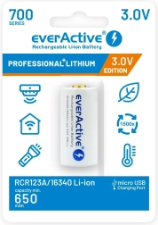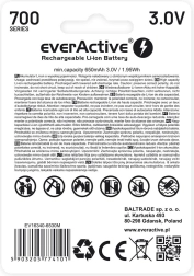 Иновативната презареждаща батерия 16340 EverActive с капацитет 700 mAh е идеален избор за всяко електронно устройство. Тази Li-ion батерия се отличава със своята специална версия с напрежение 3V, което я прави директен заместител на стандартните батерии CR123. Конструкцията ѝ включва електронна защита PCM, която предпазва от презареждане, дълбок разряд и късо съединение.