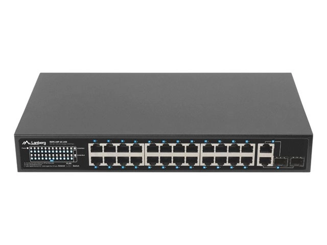 Lanberg RSFE-24P-2C-250 подава захранване и предава данни по един кабел благодарение на PoE/PoE+ (IEEE 802.3af/at). Спестява време и разходи за отделна електроинсталация и улеснява внедряването в обширни обекти, където крайните устройства нямат наличен контакт – идеален за IP камери, VoIP телефони, Wi‑Fi точки за достъп и системи за контрол на достъпа.