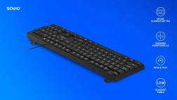 Практичната жична клавиатура SAVIO за ежедневна работа и забавление предлага надеждна USB връзка, пълен US layout със 104 клавиша, дълъг живот до 5 милиона натискания и plug & play без нужда от драйвери. Благодарение на тънкия дизайн и здрава, лека конструкция е подходяща за всяко бюро.