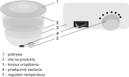 Работи с температурен диапазон от 35°C до 70°C, което осигурява по-добър контрол върху сушенето на различни видове храни.