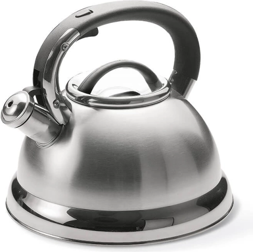 Обмислените детайли повишават комфорта: студената ергономична дръжка предпазва от изгаряния, подсвиркването навреме сигнализира за кипене, а лесно свалящият се капак улеснява доливането на вода и почистването. Многослойното капсуловано дъно осигурява бърз пренос на топлина и спестяване на време.