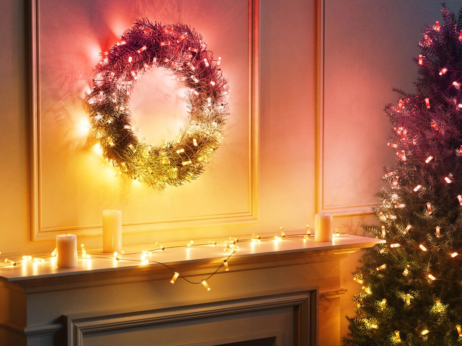 Насладете се на удивителни декоративни ефекти у дома благодарение на блестящия коледен венец и елха с вериги от светлинки.