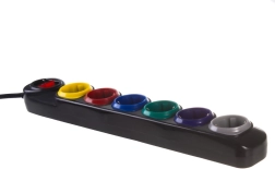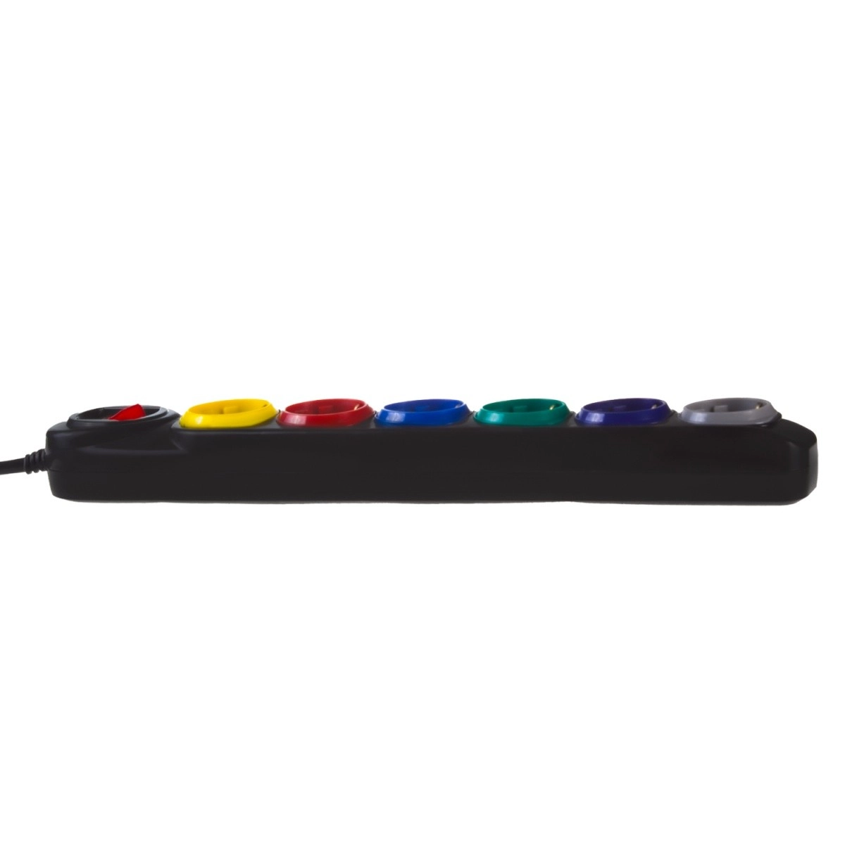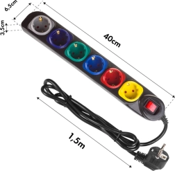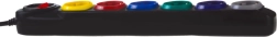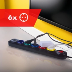 Всяко от шестте гнезда е в различен цвят за лесна идентификация на свързаните устройства – ред в кабелите дори при пълно натоварване.