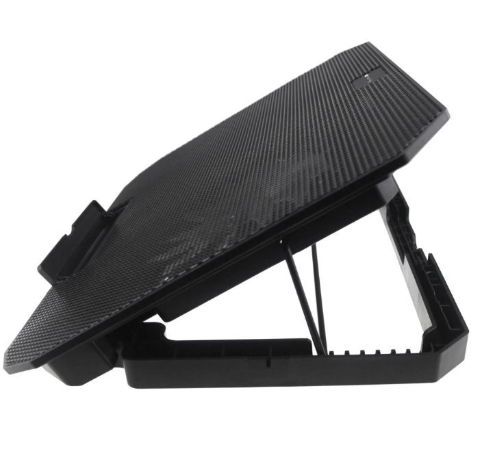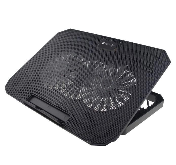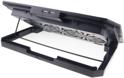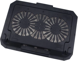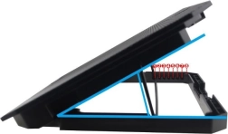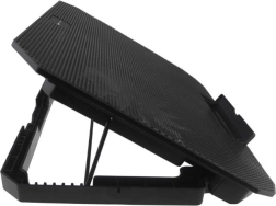 Поддържайте лаптопа си в безопасни температури и работете по-удобно с тази универсална охлаждаща подложка за устройства до 17". Тя предлага два тихи 140 mm вентилатора с синя LED подсветка, до 8 степени на регулиране на височината за ергономия, практична противохлъзгаща стоперна планка и USB хъб с 2 порта за лесно свързване на аксесоари.