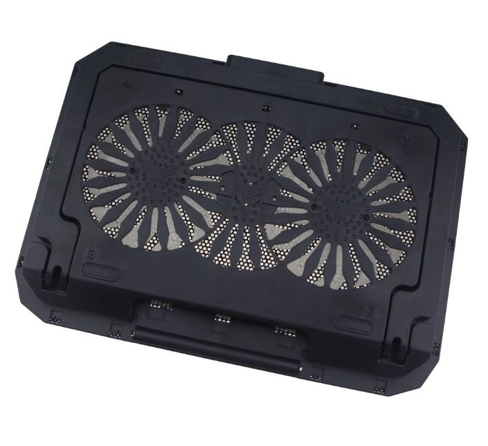 Охлаждащата подложка е проектирана за лаптопи до 17" и съчетава ефективно охлаждане с комфорт при работа. Двата големи 140 mm вентилатора със скорост до 1300 об./мин. осигуряват плавен въздушен поток през металната решетка, а видимата LED подсветка придава стил на работното ви място.