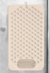 Подложката RUHHY комбинира противохлъзгаща защита с релаксиращ масаж на стъпалата. Гъстата мрежа от вендузи прилепва здраво към гладката повърхност, докато纹урираният релеф с издатини нежно масажира стъпалата и подпомага удобството при ежедневната хигиена.