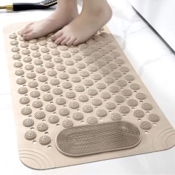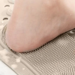 Повдигнатите релефи създават приятен масажен ефект, повишават комфорта при душ и подпомагат хигиенното измиване на стъпалата без навеждане.