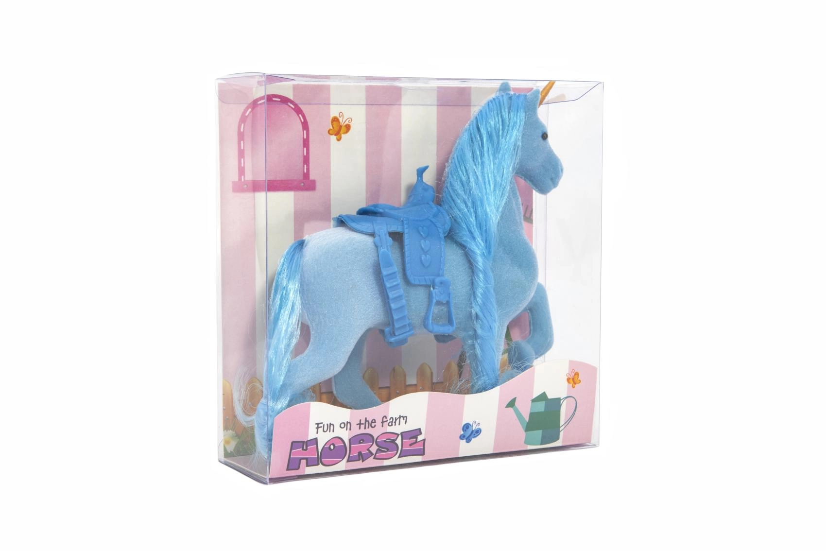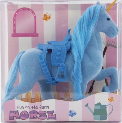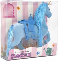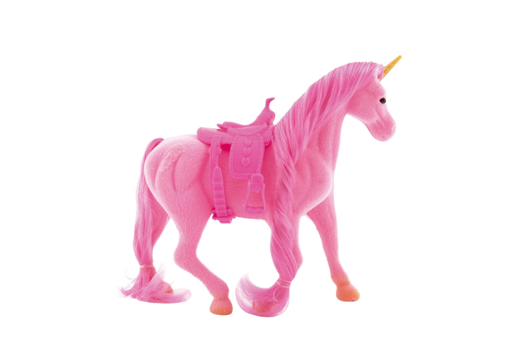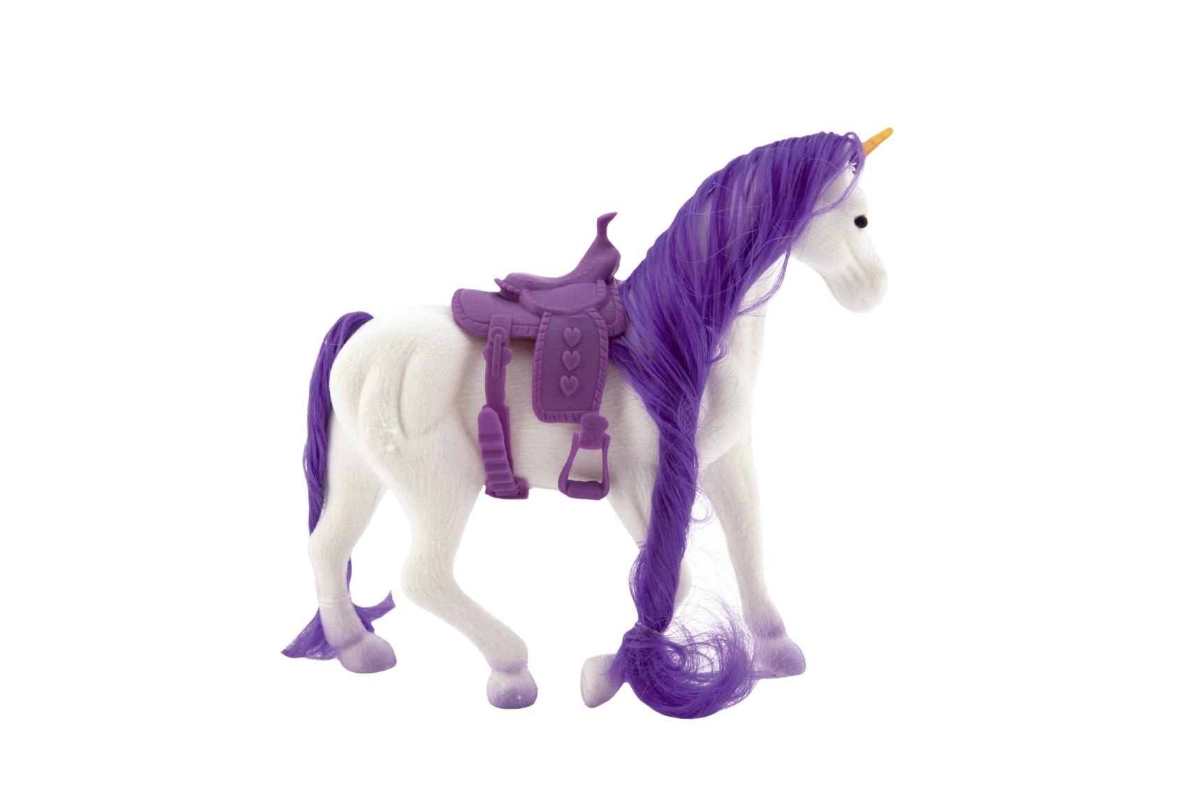 Открийте магията на грижата за собствен еднорог. Този пластмасов еднорог с мека флийс повърхност има богата грива и опашка, които могат многократно да се решат и оформят. Благодарение на седлото е готов за всяко приключение и фантастични езди.